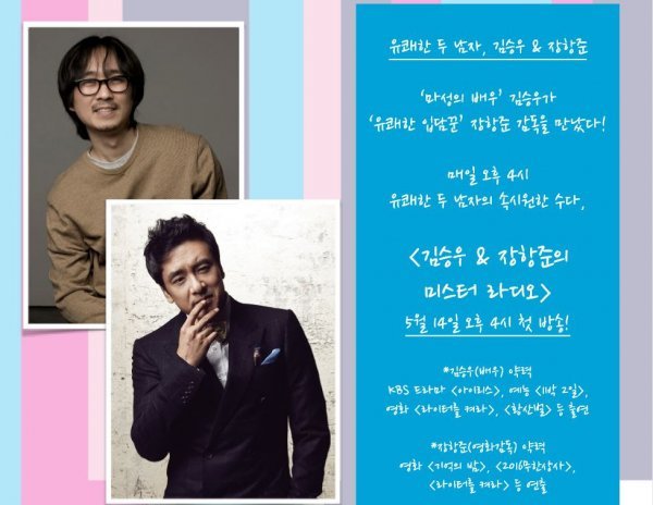 한편 KBS 쿨FM(89.1Mhz)이 봄개편을 맞아 신입 DJ들을 맞는다. 오후 4시에는 김승우와 장항준이 진행하는 ‘김승우&장항준의 미스터 라디오’(5월14일 첫 방송)가 편성된다. 오후 8시에는 악동뮤지션의 수현이 ‘볼륨을 높여요’(6월4일 첫 방송)의 새로운 진행자로 발탁됐다.
