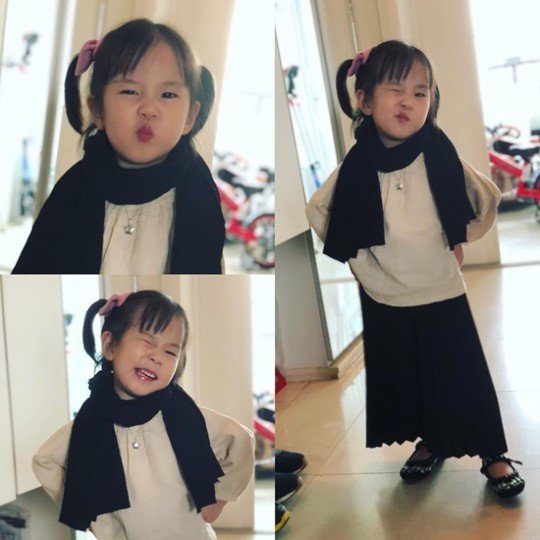 유진은 지난 7일 자신의 인스타그램에 “옷 입혀줬더니 어울리는 신발 찾아서 신고 장난기 그득한 얼굴로 포~~~즈!”라는 글과 함께 사진을 게재했다.