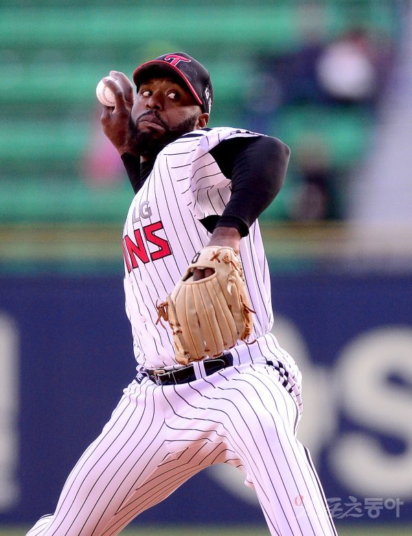 8일 서울 잠실야구장에서 ‘2018 신한은행 MY CAR KBO리그’ 롯데자이언츠와 LG트윈스 경기가 열렸다. 선발 투수로 등판한 LG 소사가 역투하고 있다.