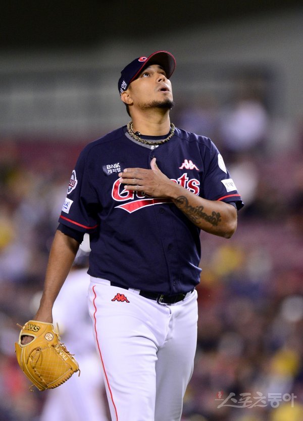 8일 서울 잠실야구장에서 ‘2018 신한은행 MY CAR KBO리그’ 롯데자이언츠와 LG트윈스 경기가 열렸다. 선발 투수로 등판한 롯데 듀브론트가 6회말 LG의 공격을 무실점으로 막은 후 더그아웃으로 향하고 있다.