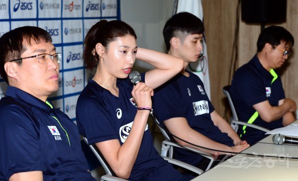 ‘2018 FIVB 발리볼네이션리그’를 앞두고 한국 배구국가대표팀 기자회견이 9일 충북 진천 선수촌에서 열렸다.