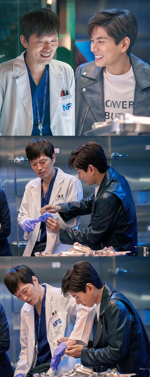 이번에 공개된 사진은 이이경이 정재영에게 장갑을 끼워주며 선후배 사이의 돈독한 모습을 보여주고 있다. 극 중 정재영과 이이경은 까칠한 법의관 백범 역과 강력계 열혈 형사 차수호 역을 맡고 있으며, 성향이 전혀 다른 두 캐릭터가 현장에서 훈훈한 만남을 가져 ‘검법남녀’ 속 男男케미의 최강 호흡을 기대케한다.