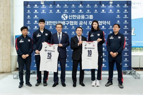 신한금융그룹이 11일 오전 서울 중구 세종대로 소재 신한금융 본점에서 대한민국배구협회(회장 오한남)와 후원 협약식을 가졌다.