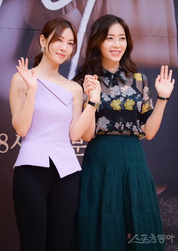 배우 김소연과 송윤아(오른쪽)가 11일 서울 양천구 목동 SBS에서 열린 새 새 주말특별기획 ‘시크릿 마더’ 제작발표회에 참석해 포즈를 취하고 있다.