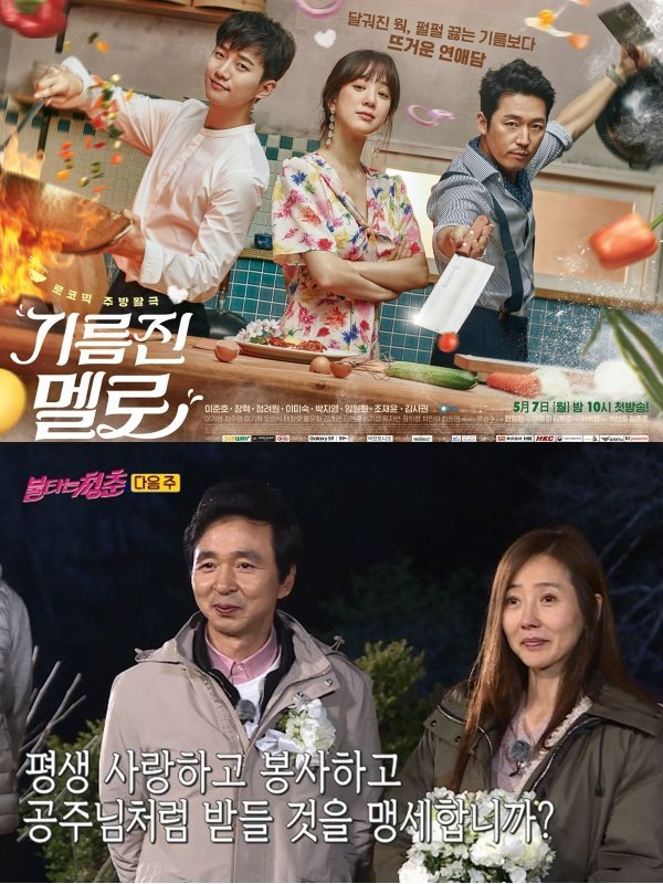 이처럼 SBS에서 사랑을 자극하는 프로그램중 드라마 ‘기름진 멜로’는 매주 월,화요일 밤 10시에, 그리고 ‘훈남정음’은 5월 23일부터 매주 수,목요일 밤 10시에 방송된다. 그리고 예능 ‘불타는 청춘’과 ‘로맨스 패키지’는 각각 화요일과 수요일 밤 11시 10분에 시청자들을 찾아가고 있다.
