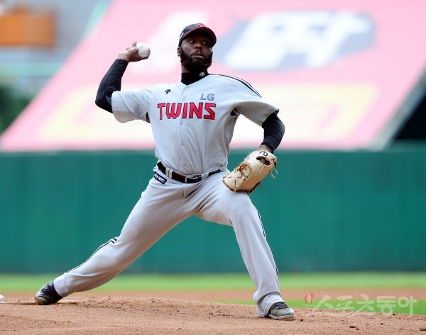 13일 인천 SK행복드림구장에서 ‘2018 신한은행 마이카 KBO리그’ SK 와이번스와 LG 트윈스의 경기가 열렸다. LG 선발투수 소사가 힘차게 볼을 던지고 있다.