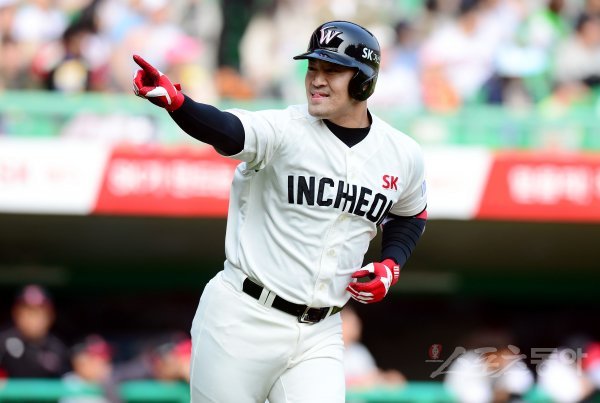 13일 인천 SK행복드림구장에서 ‘2018 신한은행 마이카 KBO리그’ SK 와이번스와 LG 트윈스의 경기가 열렸다. 7회말 무사 만루에서 SK 정의윤이 LG 고우석을 상대로 우월 만루 홈런을 쏘아 올린 뒤 세리머니를 펼치고 있다.