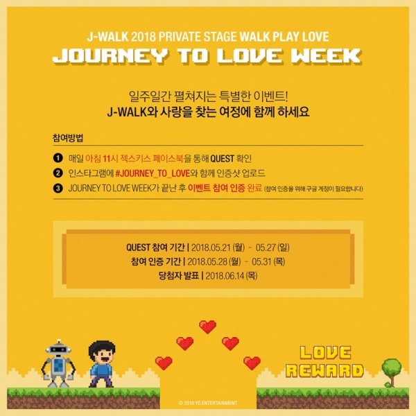 일반 티켓 오픈과 더불어 제이워크 프라이빗 스테이지 이벤트 ‘JOURNEY TO LOVE WEEK’가 진행된다. 오는 21일부터 27일까지 일주일에 걸쳐 매일 떠오르는 미션을 수행한 뒤 #JOURNEY_TO_ LOVE라는 해시태그와 함께 인스타그램에 업로드하면 된다. 참여자 중 추첨을 통해 특별한 상품이 주어진다.