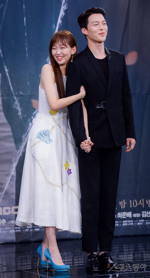 배우 진기주와 장기용(오른쪽)이 14일 서울 마포구 상암동 MBC에서 진행된 MBC 새 수목드라마 ‘이리와 안아줘’ 제작발표회에서 포즈를 취하고 있다.