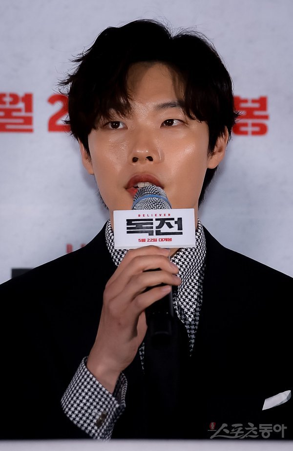 배우 류준열이 15일 서울 광진구 롯데시네마 건대입구에서 열린 영화 ‘독전’ 언론시사회 및 기자간담회에 참석해 인사말을 하고 있다.