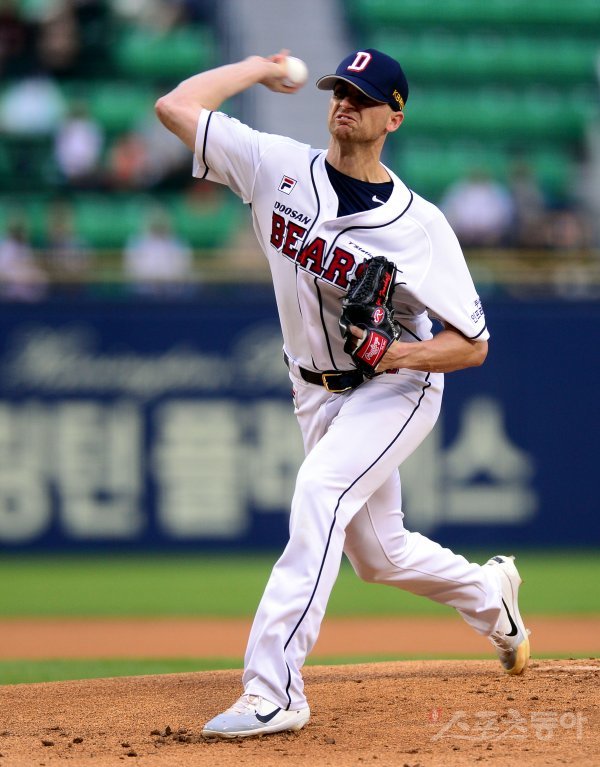 15일 서울 잠실야구장에서 ‘2018 신한은행 마이카 KBO리그’ 두산 베어스와 SK 와이번스의 경기가 열렸다. 두산 선발투수 후랭코프가 힘차게 볼을 던지고 있다.
