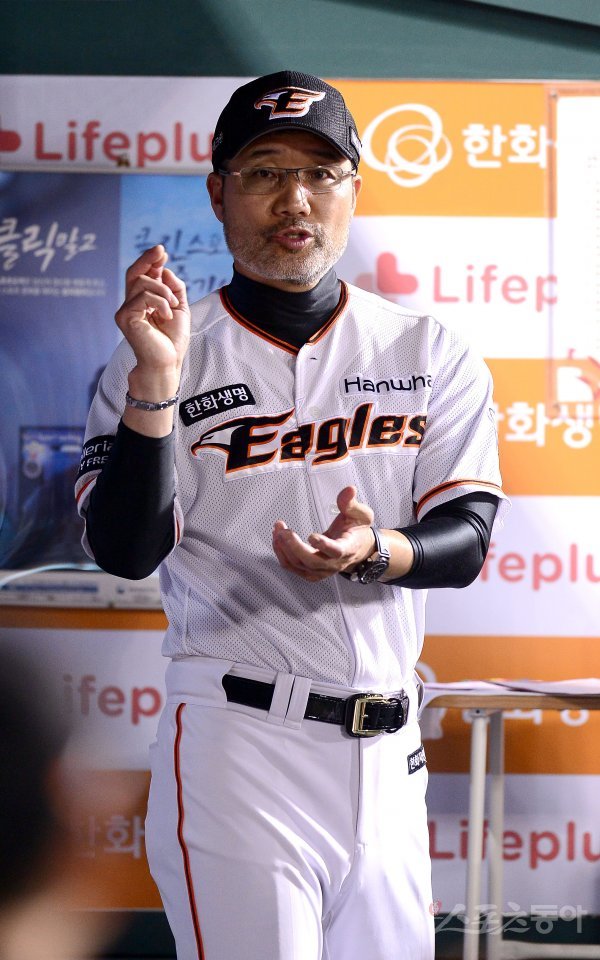 15일 대전 한화생명이글스파크에서 ‘2018 신한은행 MY CAR KBO리그’ kt위즈와 한화이글스 경기가 열렸다. 한화 한용덕 감독이 작전 지시를 하고 있다.