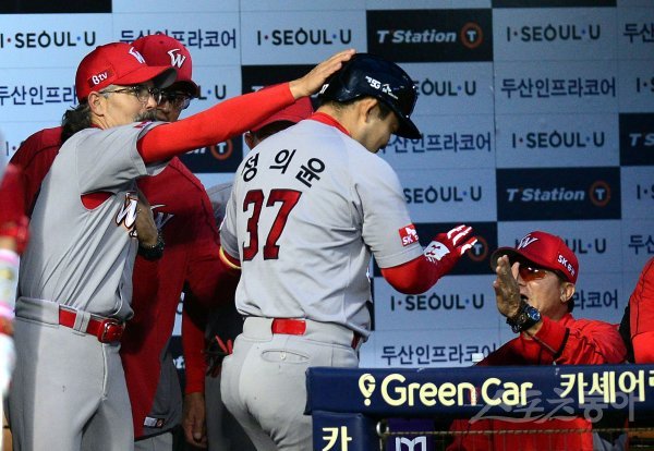 힐만 감독 ‘정의윤, 홈런 축하해’