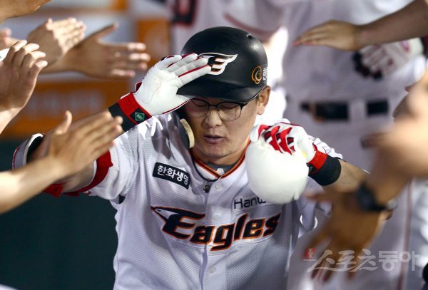 16일 대전 한화생명이글스파크에서 ‘2018 신한은행 MY CAR KBO리그’ kt위즈와 한화이글스 경기가 열렸다. 6회말 1사 1,2루 한화 이성열이 역전 좌월 스리런홈런을 날리고 그라운드를 돌아 홈인해 하이파이브 하고 있다.