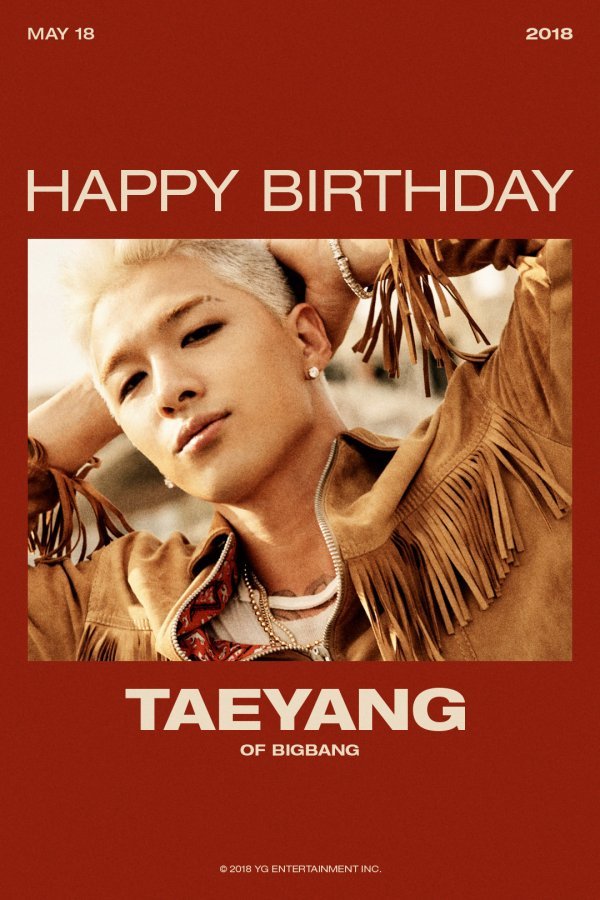 YG엔터테인먼트는 오늘(18일) 공식 블로그에 현재 군복무중인 태양의 생일 기념 특별 축전 ‘HAPPY BIRTHDAY TAEYANG’ 을 공개했다. 태양의 남성미 가득한 카리스마와 함께 깊은 눈빛이 시선을 끄는 포스터다.