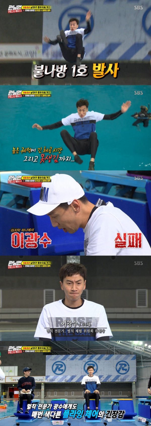 이광수가 ‘날아라 통아저씨 퀴즈’에 실패해 첫 번째로 플라잉 체어 벌칙을 받았다.