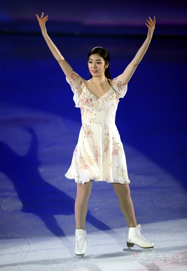20일 서울 목동 아이스링크에서 ‘SK 텔레콤 올 댓 스케이트 2018’가 열렸다. 김연아가 화려한 아이스쇼를 마친 뒤 팬들에게 인사하고 있다.
