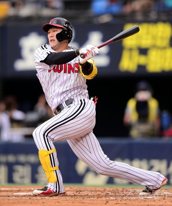 22일 서울 잠실야구장에서 ‘2018 신한은행 MY CAR KBO리그’ NC다이노스와 LG트윈스 경기가 열렸다. 2회말 2사 LG 양석환이 좌전 2루타를 치고 있다.