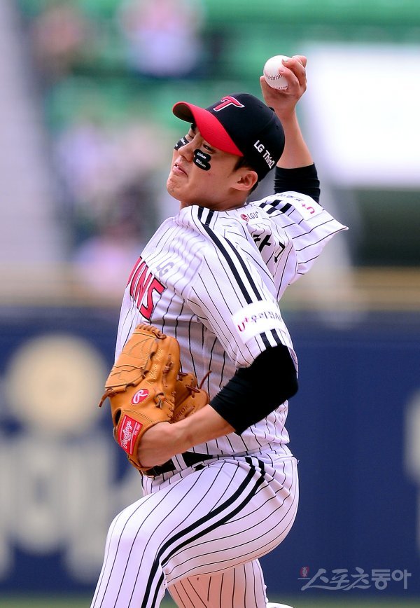22일 서울 잠실야구장에서 ‘2018 신한은행 MY CAR KBO리그’ NC다이노스와 LG트윈스 경기가 열렸다. 선발 투수로 등판한 LG 임찬규가 역투하고 있다.