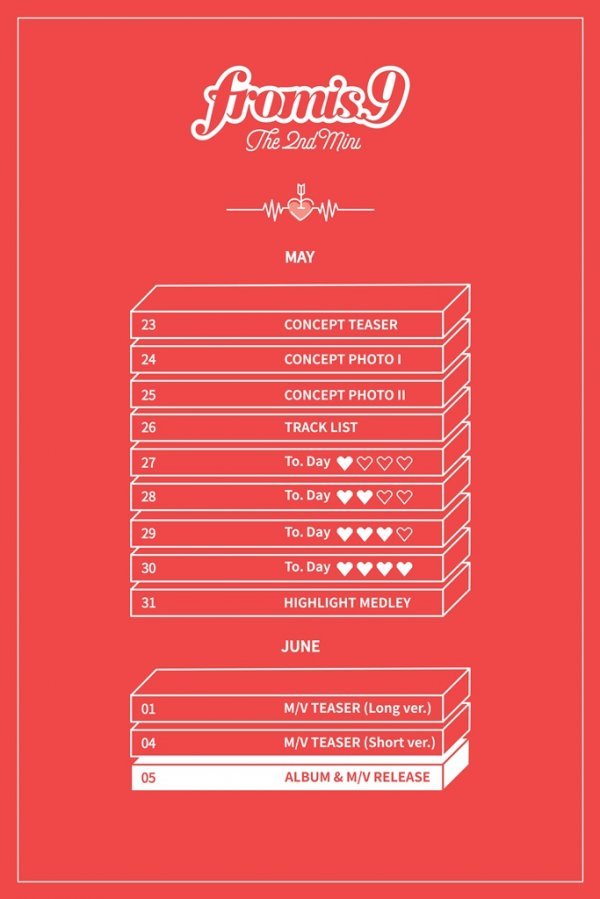 4개의 하트 중에서도 27일 단 1개였던 흰색 하트는 날마다 한 개씩 늘어나며 30일에는 모든 하트가 진하게 물들어져 있다. 프로미스나인은 27일부터 30일까지 어떤 콘텐츠를 공개할지, 스케줄러에 표시된 하트는 무엇을 의미할지 팬들의 궁금증은 더욱 증폭되고 있다.