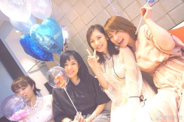 이들은 아오이 소라의 이름이 쓰인 헬륨 풍선을 들고 파티 분위기를 한껏 연출했다. 특히 주인공인 아오이 소라는 동료들의 축하에 활짝 미소짓고 있다.