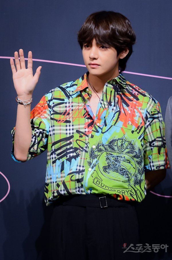 그룹 방탄소년단의 뷔가 24일 서울 중구 소공동에 위치한 롯데호텔 서울 크리스탈볼룸에서 열린 정규 3집 LOVE YOURSELF 轉 ‘Tear’(러브 유어셀프 전 ‘티어’) 발매 기념 기자간담회에 참석해 포즈를 취하고 있다.