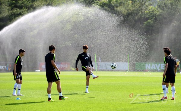 축구대표팀 ‘시원한 물줄기를 배경으로 훈련!’