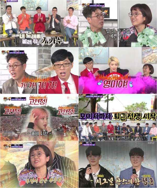 시청자들의 든든한 사랑을 받고 있는 KBS 2TV ′해피투게더3′(이하 ‘해투3’)의 24일 방송은 가정의 달 세 번째 특집 ‘내 노래를 불러줘-개가수 특집’으로 꾸며졌다. 입담이면 입담, 노래면 노래, 모두 빠지지 않는 셀럽파이브 송은이&안영미-김영철-노을 강균성&전우성-솔비가 빈 틈 없는 토크 열전과 흥미진진한 퇴근 대결을 펼쳐 시청자들의 웃음보를 자극했다.