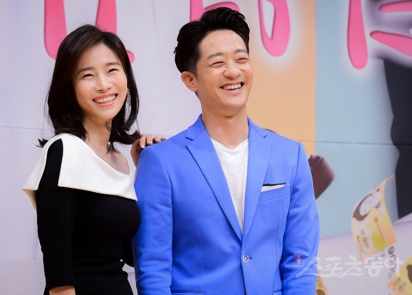 배우 문보령과 알렉스(오른쪽)이 25일 서울 양천구 목동 SBS에서 열린 아침연속극 ‘나도 엄마야’ 기자간담회에 참석해 포즈를 취하고 있다.