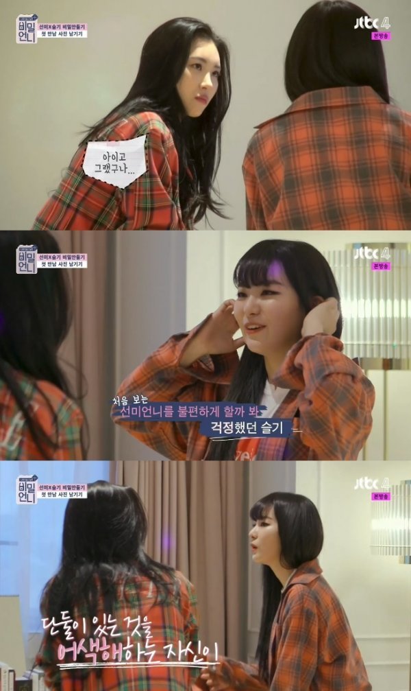 25일 오후 JTBC4 나만 알고 싶은 ‘비밀언니’에서는 레드벨벳 슬기가 선미와 처음 만나게 되는 모습이 전파를 탔다.