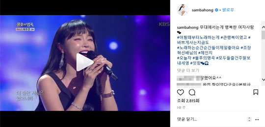 가수 홍진영이 ‘불후의 명곡’ 속 자신의 무대를 담은 영상과 함께 소감을 전했다.