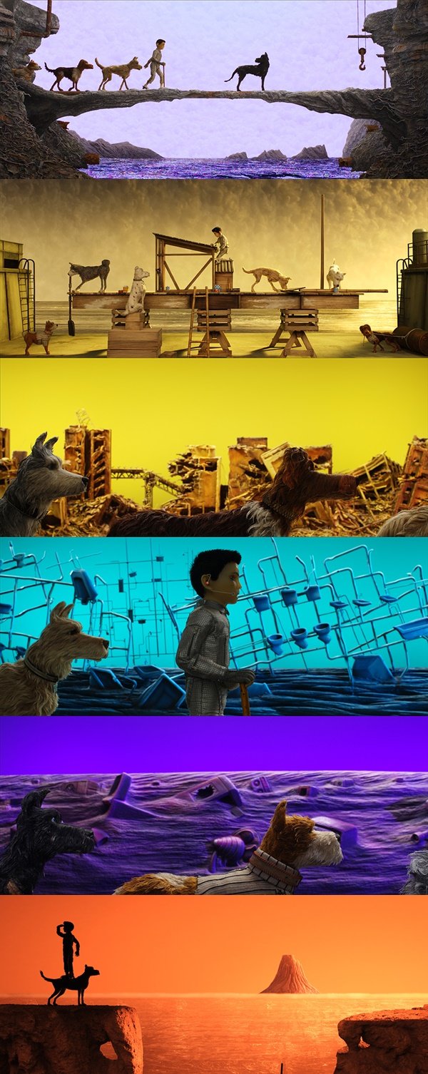 다섯 마리 개들과 소년 ‘아타리’의 모험은 쓰레기 섬이라는 독특한 배경을 통해 더욱 다이나믹하고 특별해진다. 이번에 공개된 ‘개들의 섬’ 비주얼 어드벤처 스틸은 웨스 앤더슨 감독답게 단연 화려하고 환상적인 색감으로 눈길을 끈다. 전작 ’그랜드 부다페스트 호텔’에서 자신만의 색감으로 세상에 없는 환상적인 호텔을 스크린에 그려냈던 그는 ‘개들의 섬’에서는 쓰레기 섬이라는 공간적 배경을 자신의 독보적 감성으로 가득 채워 넣었다.