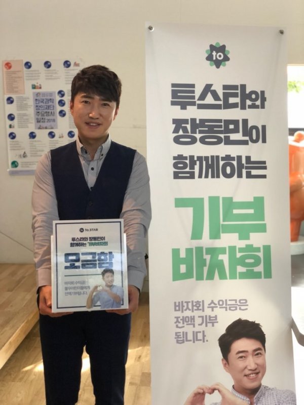 소속사에 따르면 장동민은 27일 서울 모처에서 진행된 자선바자회와 팬들과의 소통을 위해 개발한 어플 투스타(to.STAR)의 수입금 약 1000만 원을 강원도 원주시 ‘행복꿈터지역아동센터’에 기부한다. 기부는 장동민과 함께 참여한 팬들의 이름으로 이뤄진다.