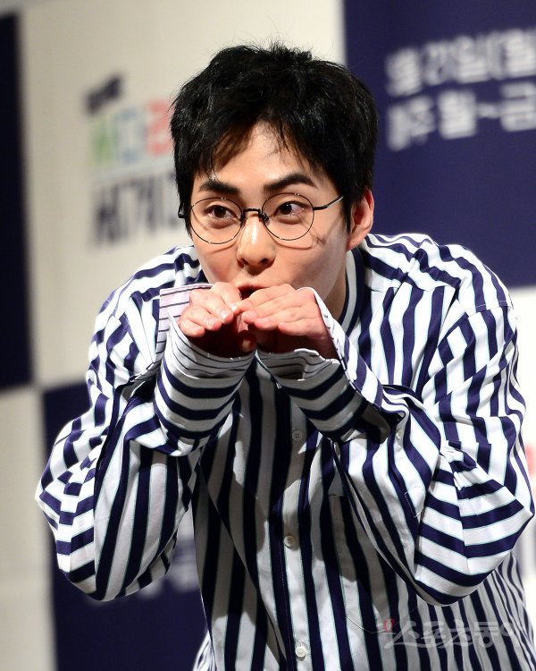 29일 서울 논현동 임피리얼 팰리스 호텔에서 열린 ‘엑소의 사다리타고 세계여행’ 제작발표회에서 엑소 시우민이 포토타임을 갖고 있다.