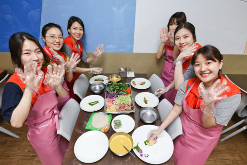 오전 9시부터 4시간 동안 어르신들을 위해 치매방지를 위한 미술 수업을 진행하고, 쾌적한 환경 조성을 위해 배수로의 쓰레기를 청소했다. 복지관을 이용하는 어르신을 위한 점심메뉴로 월남쌈을 정해 직접 재료를 썰고, 손으로 쌈을 싸 대접했다.