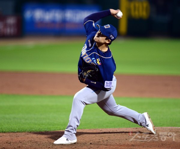29일 대전 한화생명이글스파크에서 ‘2018 신한은행 마이카 KBO리그’ 한화 이글스와 NC 다이노스의 경기가 열렸다. 5회말 무사 1, 2루에서 NC 장현식이 구원 등판해 볼을 던지고 있다.