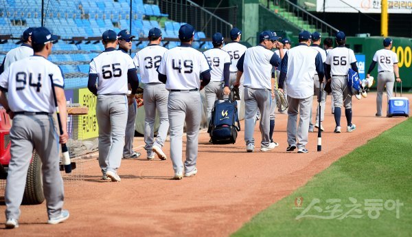 30일 대전 한화생명이글스파크에서 ‘2018 신한은행 마이카 KBO리그’ 한화 이글스와 NC 다이노스의 경기가 열린다. 경기에 앞서 NC 선수들이 훈련을 위해 이동하고 있다.