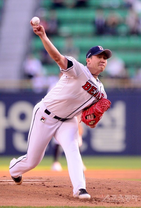30일 서울 잠실야구장에서 ‘2018 신한은행 MY CAR KBO리그’ SK와이번스와 두산베어스 경기가 열렸다. 선발 투수로 등판한 두산 이용찬이 역투하고 있다.