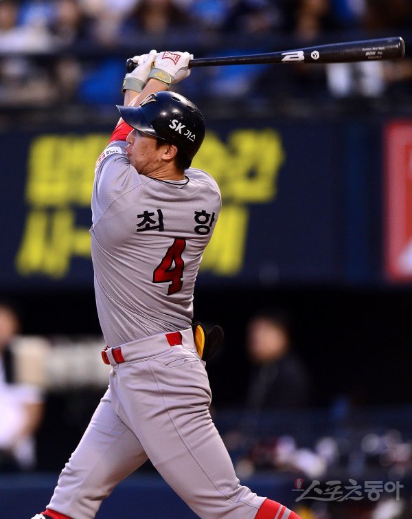 30일 서울 잠실야구장에서 ‘2018 신한은행 MY CAR KBO리그’ SK와이번스와 두산베어스 경기가 열렸다. 5회초 2사 1루 SK 최항이 중월 투런 홈런을 날리고 있다.