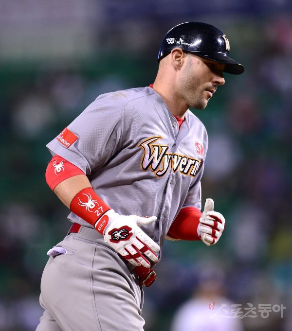 30일 서울 잠실야구장에서 ‘2018 신한은행 MY CAR KBO리그’ SK와이번스와 두산베어스 경기가 열렸다. 6회초 2사 SK 로맥이 좌월 솔로 홈런을 날린 후 그라운드를 돌고 있다.
