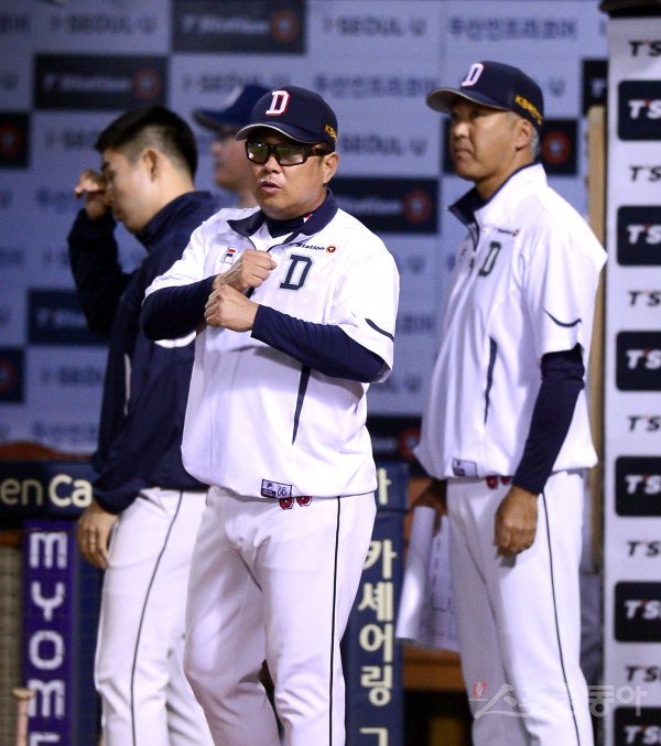 30일 서울 잠실야구장에서 ‘2018 신한은행 MY CAR KBO리그’ SK와이번스와 두산베어스 경기가 열렸다. 8회말 무사 1,2루 두산 김태형 감독이 대타 기용하고 있다.