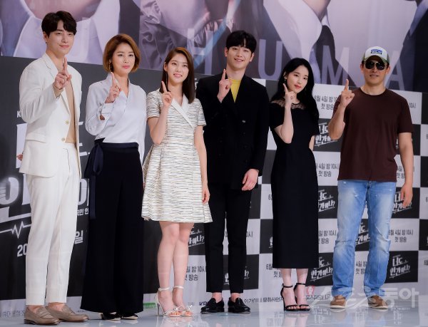 31일 서울 영등포 타임스퀘어 내 아모리스 홀에서 열린 KBS 2TV 새 월화드라마 ‘너도 인간이니?’ 제작발표회에 출연 배우들과 감독이 참석해 포즈를 취하고 있다.