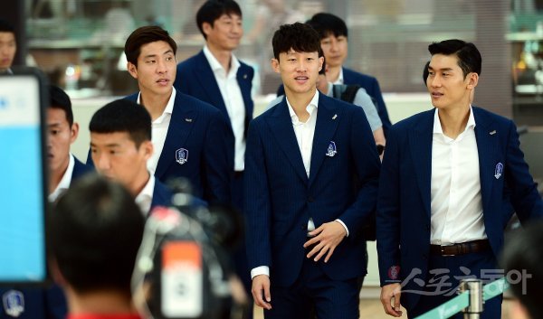 한국 축구국가대표팀이 ‘2018 러시아월드컵’을 앞두고 3일 인천국제공항을 통해 전지훈련지인 오스트리아로 출국했다. 출국에 앞서 축구대표팀 선수들이 인터뷰장으로 이동하고 있다.