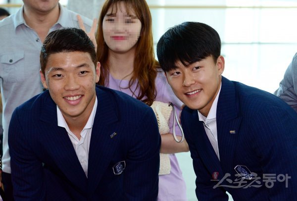 한국 축구국가대표팀이 ‘2018 러시아월드컵’을 앞두고 3일 인천국제공항을 통해 전지훈련지인 오스트리아로 출국했다. 출국에 앞서 축구대표팀 황희찬과 이승우가 카메라를 향해 포즈를 취하고 있다.