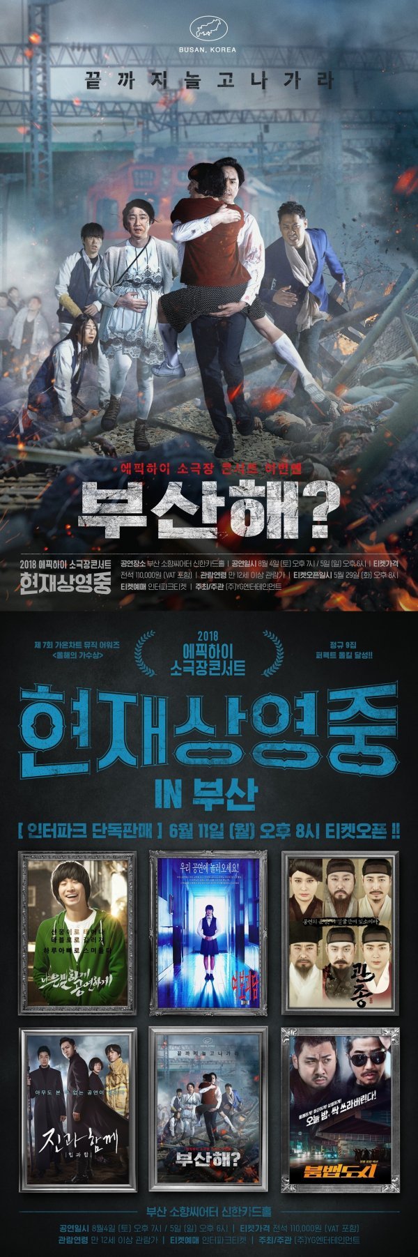 부산 공연을 위해 특별 제작된 포스터는 영화 ‘부산행’을 패러디한 ‘부산해?’다. 에픽하이는 좀비의 공격을 피해 도망치는 ‘부산행’ 주인공을 그대로 옮겨놓은 듯한 모습으로 시선을 사로잡았다. 앞서 공개된 ‘현재상영중’ 서울 공연 포스터처럼 원작과 구분하기 어려울 정도로 높은 완성도를 자랑했다.