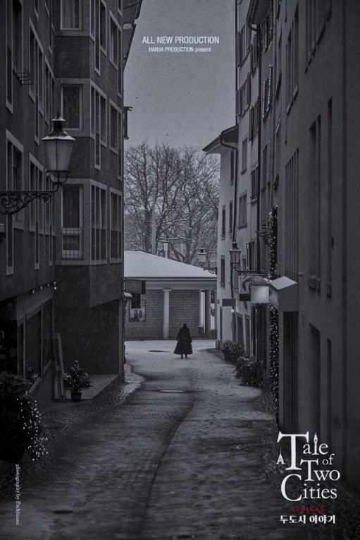 이번에 공개된 ‘두도시 이야기’ 티저 포스터도 화제가 되고 있다. MBC ‘무한도전’ 전속 작가 박지만의 Fine Art 작품 중 ‘Someone in Swizerland 2017’를 배경으로 한 이번 포스터는 눈 오는 거리를 홀로 쓸쓸히 걸어가는 한 남자의 뒷모습은 마치 시드니 칼튼의 마지막을 연상시킨다. 사랑하는 여인을 위해 자신의 목숨을 바치기로 결심하고 죽음을 향해 걸어가는 뒷모습이 묵직한 감동과 깊은 여운을 남긴다.