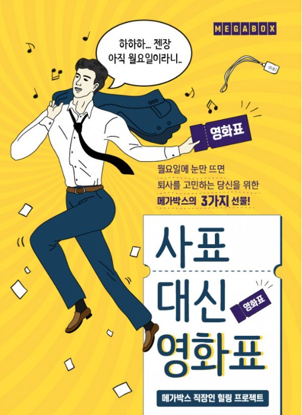 멀티플렉스 영화관 메가박스(대표 김진선)가 4일부터 24일까지 ’사표 대신 영화표’ 이벤트를 실시한다.