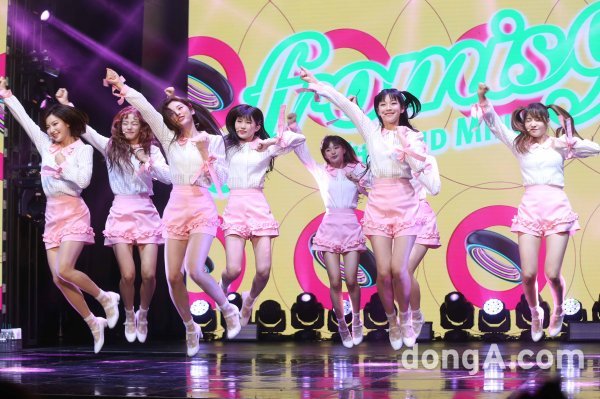 그룹 프로미스나인이 5일 오후 서울 중구 신세계 메사홀에서 열린 두번째 미니앨범 \'To. Day\' 발매 기념 쇼케이스에서 새로운 무대를 선보이고 있다.