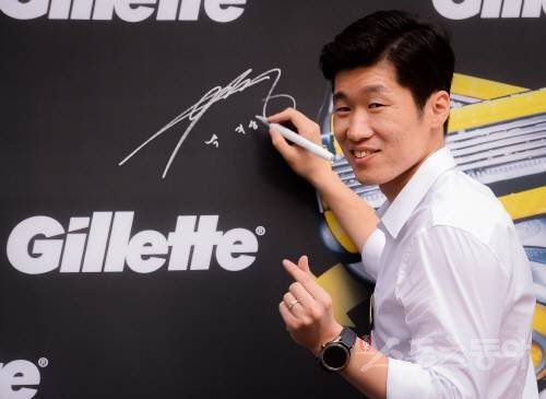 박지성 대한축구협회 유스전략본부장이 5일 서울 강남역 강남 스퀘어에서 열린 세계적인 면도기 브랜드 질레트의 ‘put Your Chin Up (당당히 고개를 들어라)’ 캠페인 이벤트에 참석해 포토타임을 갖고 있다.