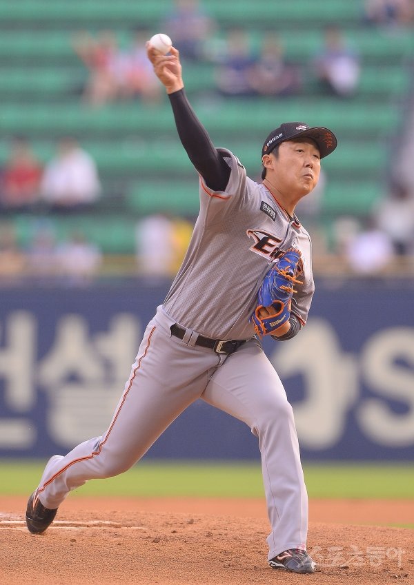 5일 서울 잠실야구장에서 ‘2018 신한은행 MY CAR KBO리그’ 한화이글스와 LG트윈스 경기가 열렸다. 1회말 한화 선발 배영수가 힘차게 공을 던지고 있다.